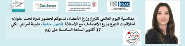 بمناسبة اليوم العالمي للتبرع بالأعضاء، 17 أكتوبر، يسرنا أن ندعوكم للقاء حواري مع الأستاذة انتصار حدية، أخصائية أمراض الكلى وكاتبة مغربية، حول موضوع "أخلاقيات التبرع وزراعة الأعضاء"