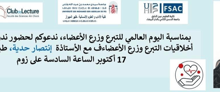 A l'occasion de la Journée mondiale du don d'organes, le 17 octobre, nous avons le plaisir de vous inviter via une session zoom pour discuter avec Prof. Intissar Haddiya médecin néphrologue et auteure Marocaine le thème "bioéthique et transplantation d'organes", en abordant les enjeux bioéthiques liés à cette pratique.