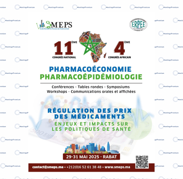 Nous avons le plaisir d’annoncer la tenue du Congrès SMEPS 2025, le rendez-vous majeur en pharmacoéconomie et pharmacoépidémiologie, qui se déroulera du 29 au 31 mai 2025 à Rabat, Maroc.